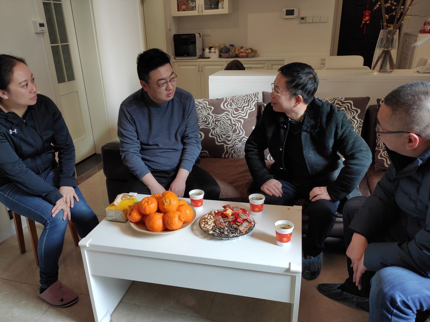 在帮扶干部家中,董一平与帮扶干部及家属们亲切交谈,仔细了解他们的生活、工作情况,并详细询问了帮扶干部的困难和需求。董一平对帮扶干部一年来的工作予以充分肯定,并就下一步如何更好开展帮扶工作进行了交流。