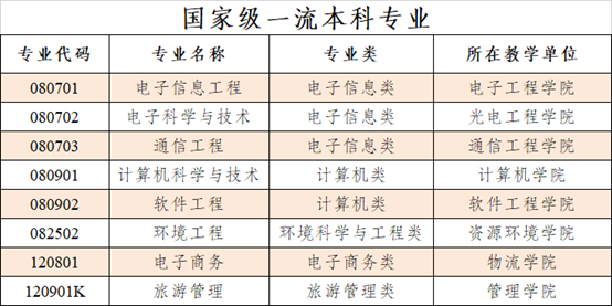 太阳集团入选首批国家级一流本科专业建设点的8个专业是:电子信息工程、电子科学与技术、通信工程 、计算机科学与技术、软件工程 、环境工程、电子商务、旅游管理。