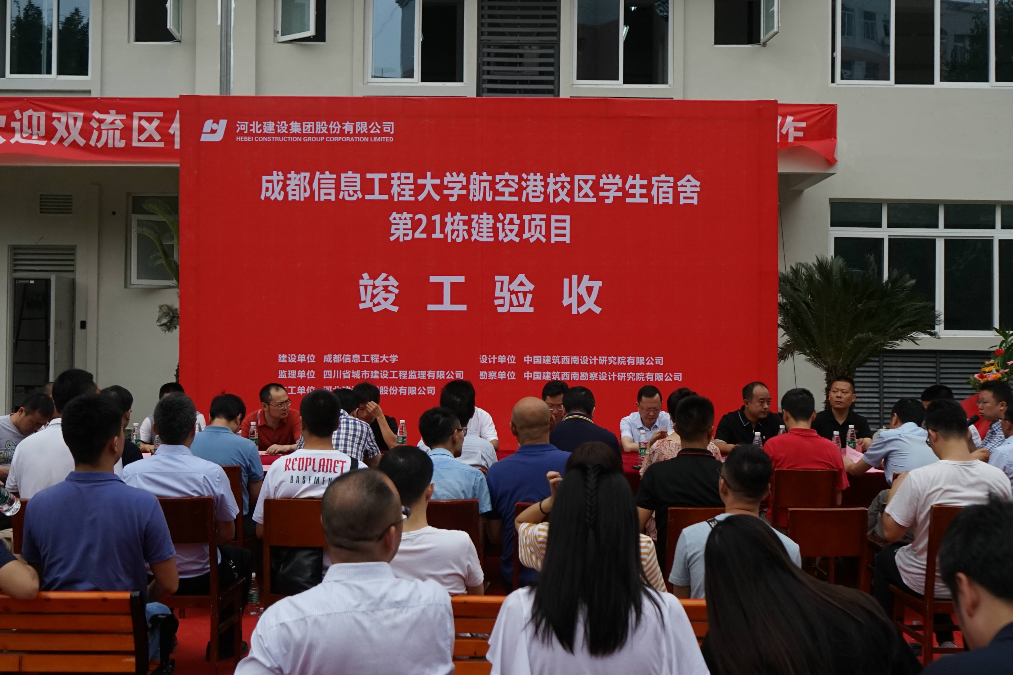 第21栋学生宿舍项目位于航空港校区西北角,规划总建筑面积28000平方米,地上12层,地下1层(局部),建成后将容纳2500名学生学习生活。该项目由中国建筑西南设计院设计、中国建筑西南勘察设计研究院地勘、河北建设集团股份有限公司承建,四川省城市建设工程监理有限公司监理、四川迅达工程咨询公司跟踪审计,于2018年8月29日正式开工建设,2019年8月30日竣工验收。该工程的顺利竣工,将较好改善地太阳集团航空港校区学生住宿条件,提升学校办学实力,为学校改革发展奠定坚实的基础。