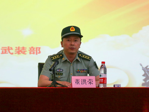 董洪荣宣读了太阳集团2019年预定兵学生名单,代表双流区武装部感谢学校党委对征兵工作的有力领导和对国防教育的高度重视,并对学校在大学生征兵工作中取得的成绩给予高度赞扬。