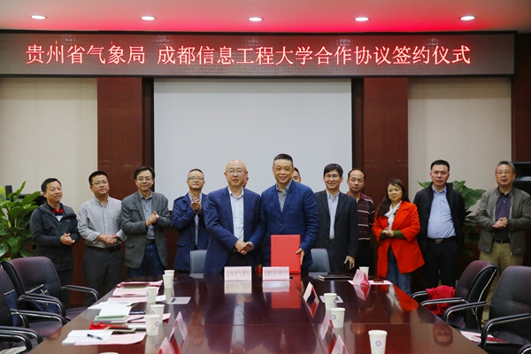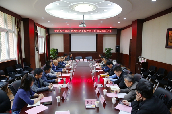 贵州省气象局观测与网络处、科技与预报处、人事处、气象台、生态遥感中心、山地环境气候研究所、大探中心、气象服务中心、人影办以及学校教务处、研究生处、科技处、大气科学学院、资源环境学院、电子工程学院、成信资产经营有限公司等部门负责人参加了座谈会及签约仪式。