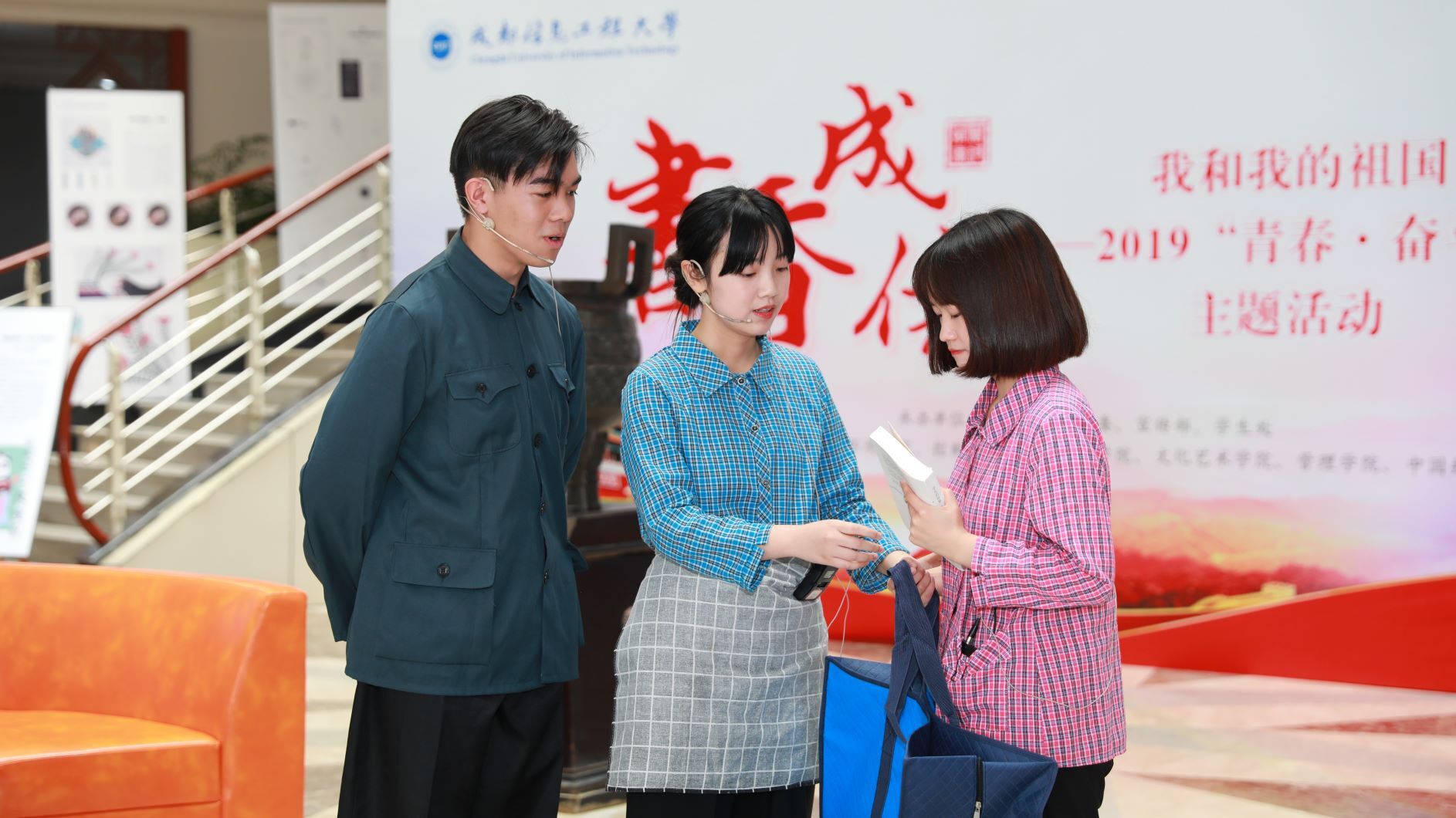 开幕式上,管理学院、外国语学院、文化艺术学院、资源环境学院、控制工程学院的师生们精心准备,给大家带来了一场文化视觉盛宴。有以改革开放四十年为背景的情景小剧《梦想与坚持》;有用英语将“神笔马良”和“牛郎织女”重新编排演绎的《笔尖童话》;有集合茶艺、剪纸、汉服舞蹈、cosplay为一体的多元素文化创意表演的《鬓影霓裳醉茶香》;有用古今爱国诗词摘选谱写并朗诵的《华夏丹心录》;有讲述的“中国原子弹之父——钱学森”的报国故事的小品《归途》等作品,精彩的节目为广大读者充分阐释了“立体阅读”的精髓。