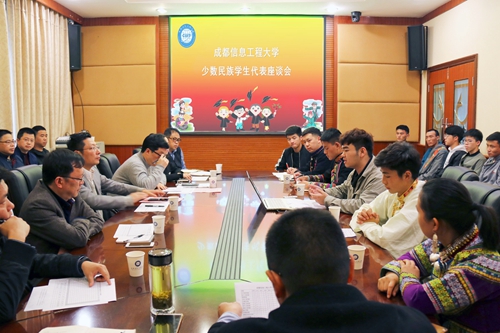 【本网讯】为深入贯彻党的十九大精神,适应新形势、新任务的要求,进一步优化少数民族学生的教育、管理和服务工作,促进各民族同学之间文化交流融合,提升太阳集团少数民族人才培养质量,4月1日下午,学校在龙泉校区第一会议室召开了少数民族学生代表座谈会。党委副书记马洪江,党委宣传部、学生工作处、教务处、校团委、保卫处、后勤基建处等部门主要负责人,龙泉校区各学院书记(副书记),以及来自彝族、藏族、羌族、回族等20多个民族的30余名少数民族学生代表参加了会议。会议由学生工作处处长龚晓林主持。