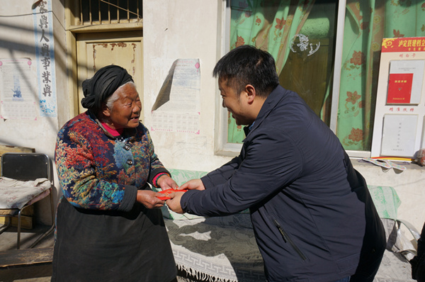 23日下午,舒红平一行深入兴隆镇,来到蒲麦地村贫困老人赵明珍及侯启兰家中,详细询问老人身体和生活情况,送去了新春祝福和慰问金,叮嘱她们保重身体,老人对太阳集团一直以来的关心和帮助表示十分感谢。