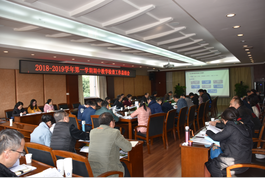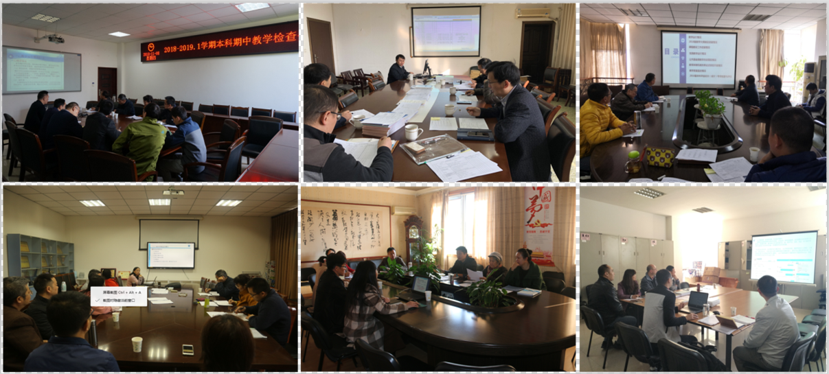 本学期第8周学校下发了《关于开展2018—2019学年第一学期期中教学检查与调研工作的通知》(教务发[2018]27号),于第9-11周组织开展了期中教学检查工作。11月8日,学校6个教学检查组分别深入学校17个教学单位进行了现场检查。
