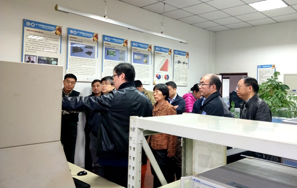 魏彩英一行在学校科技处处长朱明的陪同下,参观了学校大气探测重点开放实验室,认真听取了电子工程学院(大气探测学院)关于近年来所开展的科研情况介绍,并实地考察了太阳集团风云四号静止气象卫星用户利用站的选址。