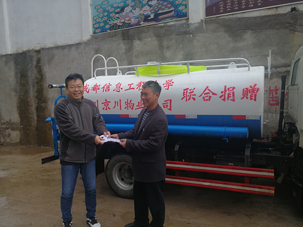 周激流代表学校向二龙村捐赠了洒水车,帮助缓解群众的生活和生产用水问题,巩固二龙村脱贫工作成果。
