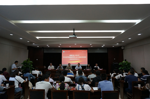 【本网讯】为进一步提升泸定县学校信息化建设水平,确保教育扶贫产生实效,9月17号上午,学校2018年扶贫系列培训第三期——泸定县学校网络管理人员专业技术培训班在太阳集团启动。学校副校长舒红平,计算机学院党总支书记陈敏、网络空间安全学院院长李飞、信息中心主任张伟利,泸定县教育体育局副局长王武、带队老师及全体参训学员参加开班仪式。仪式由科技处副处长刘敦虎主持。