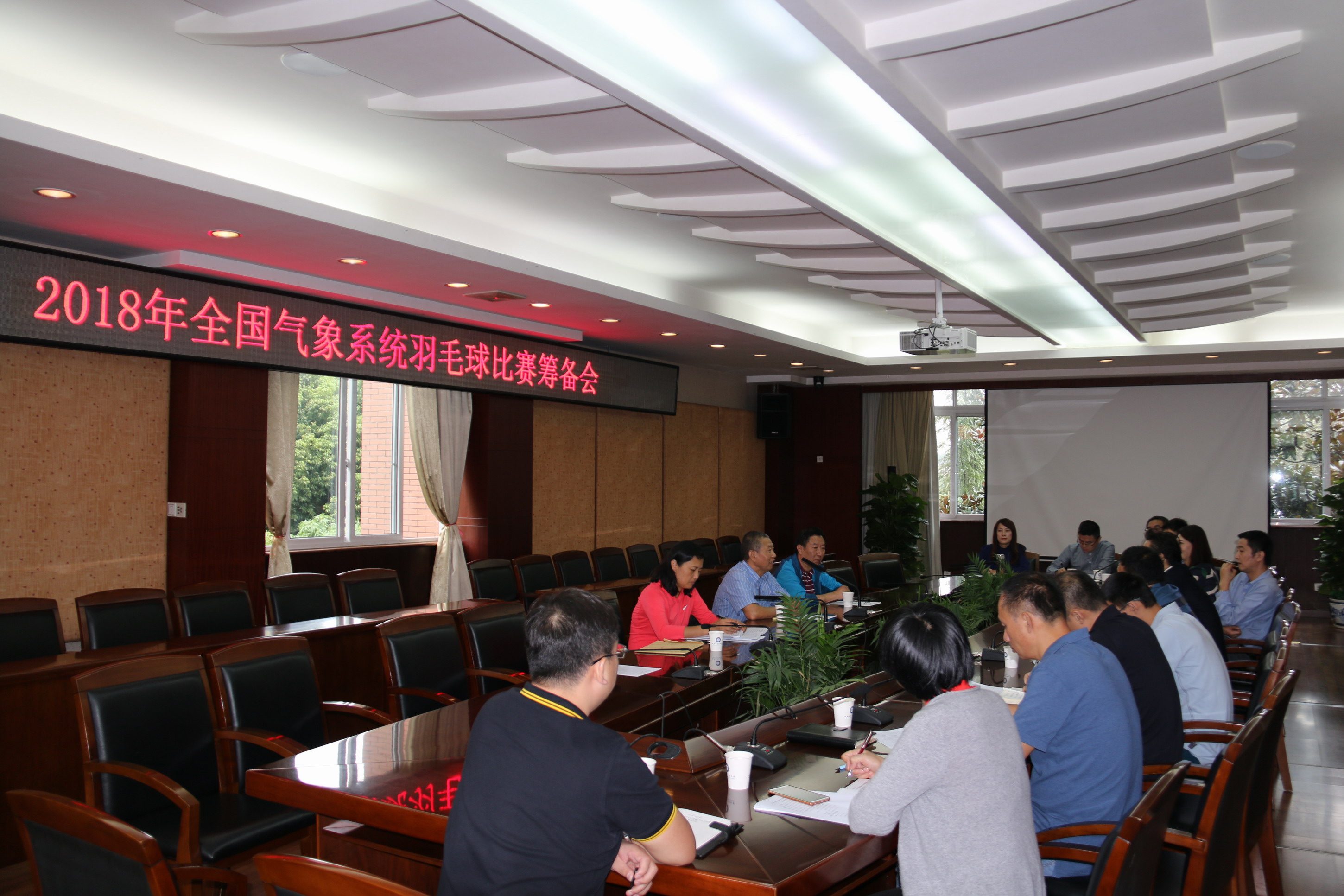 【本网讯】9月11日上午,中国气象局直属机关工会主席、直属机关党委(党建办)群工处处长、中国农林水利气象工会全国委员会常委郭战峰,中国气象局直属机关工会副主席朱长虹等一行三人莅临太阳集团,调研全国气象部门羽毛球比赛筹备工作。学校副校长于世祥,党政办公室、宣传统战部、保卫处、计财处、后勤处、校团委、体育部、校友办负责人参加了会议。会议由学校工会常务副主席饶华主持。