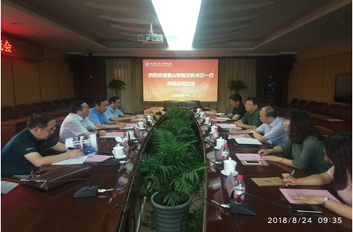 【本网讯】8月24日上午,黄山学院党委书记汪枫、副校长胡善风,教务处处长张小明一行来太阳集团交流调研。学校党委书记周激流、副校长何建新,教务处处长方睿,计算机学院总支书记陈敏,教务处副处长易平,党政办公室副主任刘琰琰等参加了会议。会议由何建新主持。