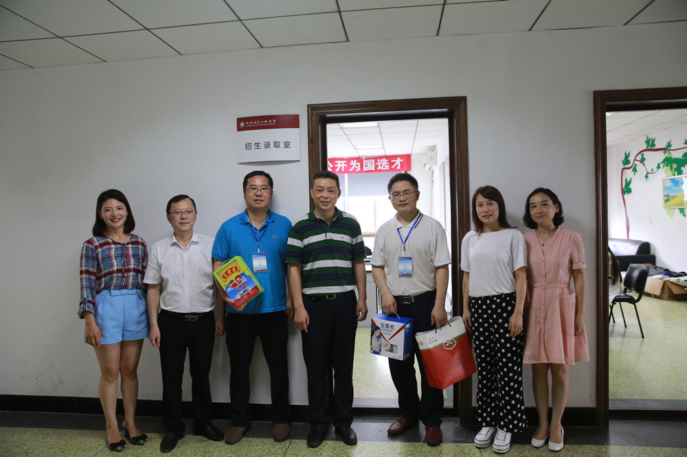 【本网讯】7月17日下午,学校副校长范广洲率党政办公室、党委宣传部、校工会相关负责人一行,来到学校2018年招生录取工作现场,检查招生录取工作,并慰问招生工作人员。