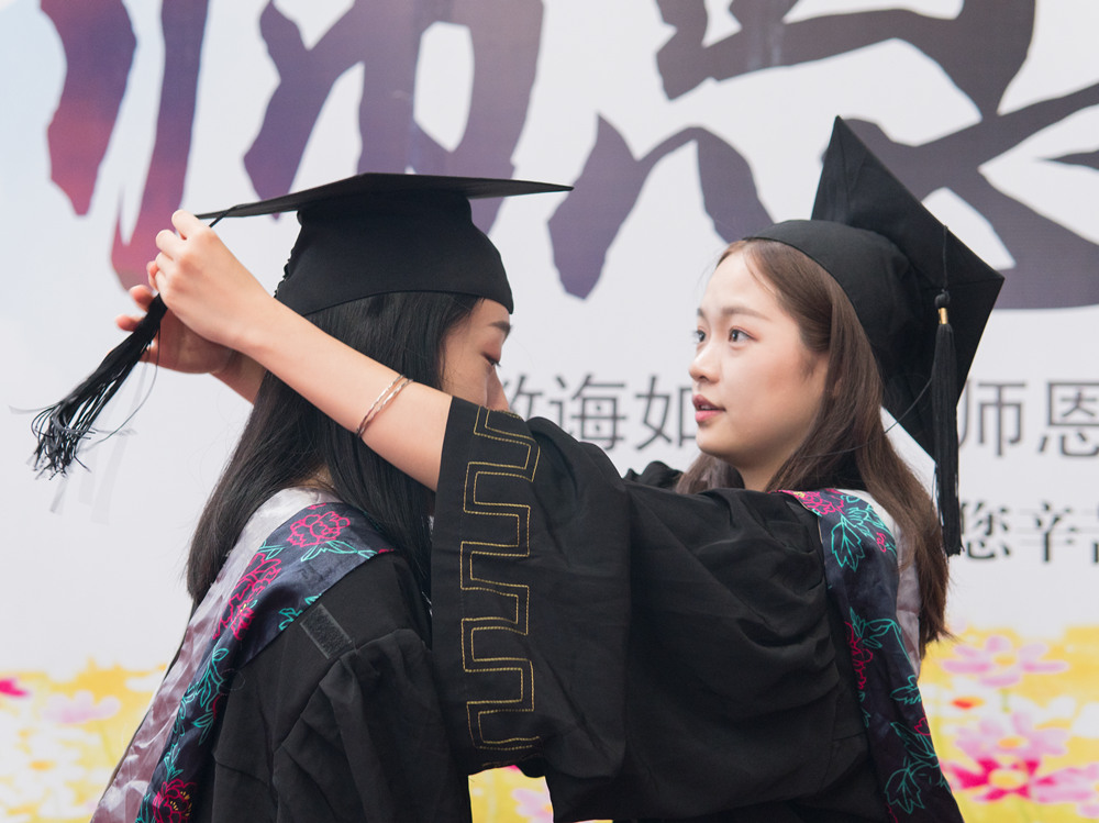 校领导为学生拨流苏