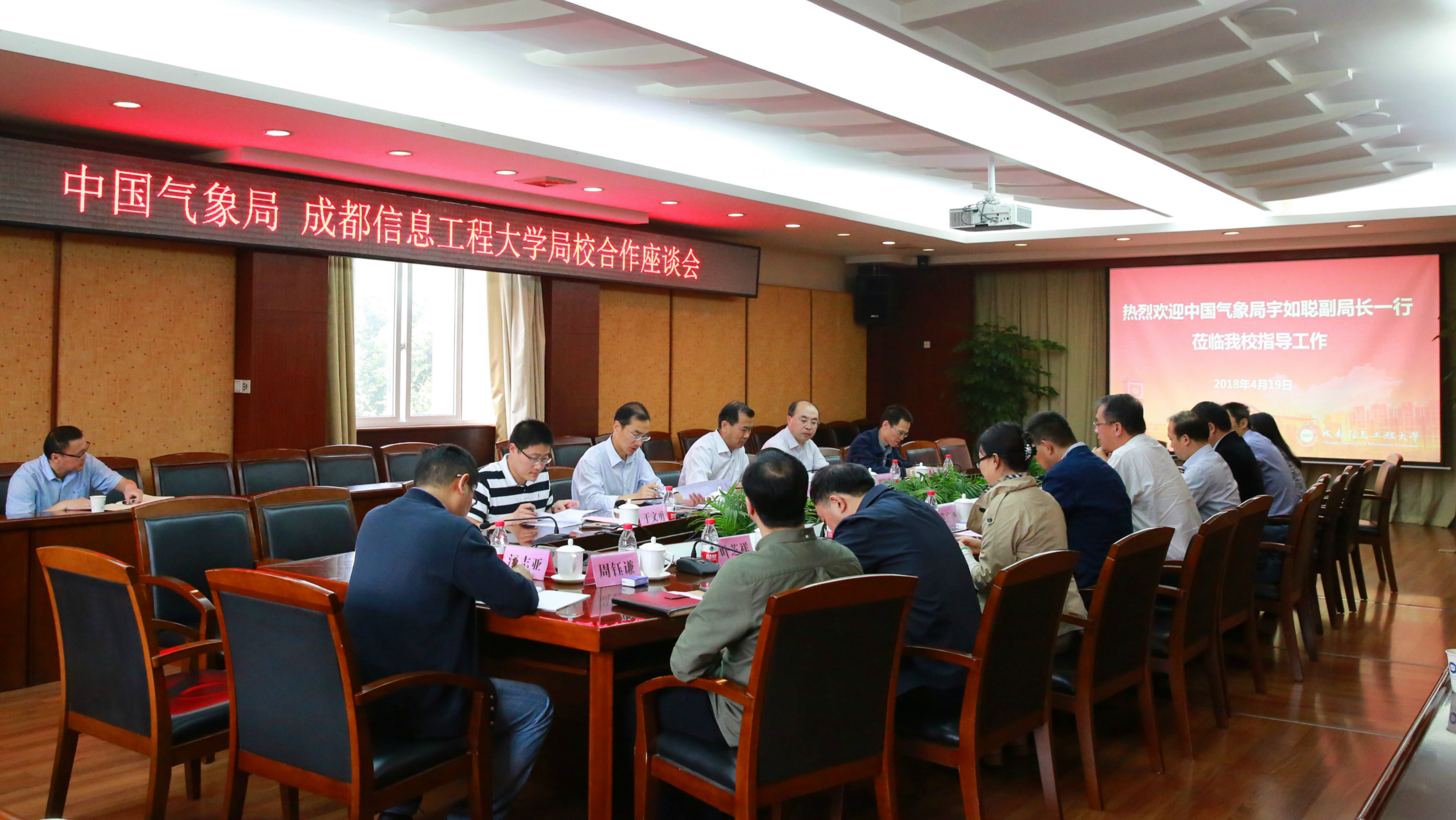 余敏明代表学校向宇如聪一行的到来表示热烈欢迎,并对中国气象局长期以来对学校发展给予的支持和关心表示感谢。