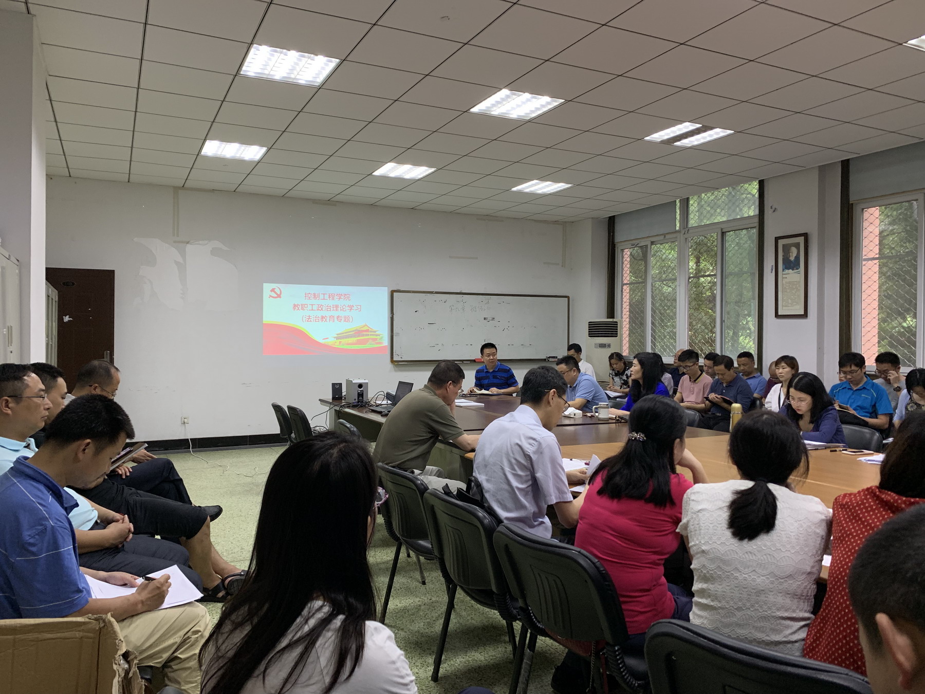 【本网讯】6月25日,学院在信息楼108会议室召开全院大会,集中组织教职工开展法治专题学习,会议由院长蒋涛主持。