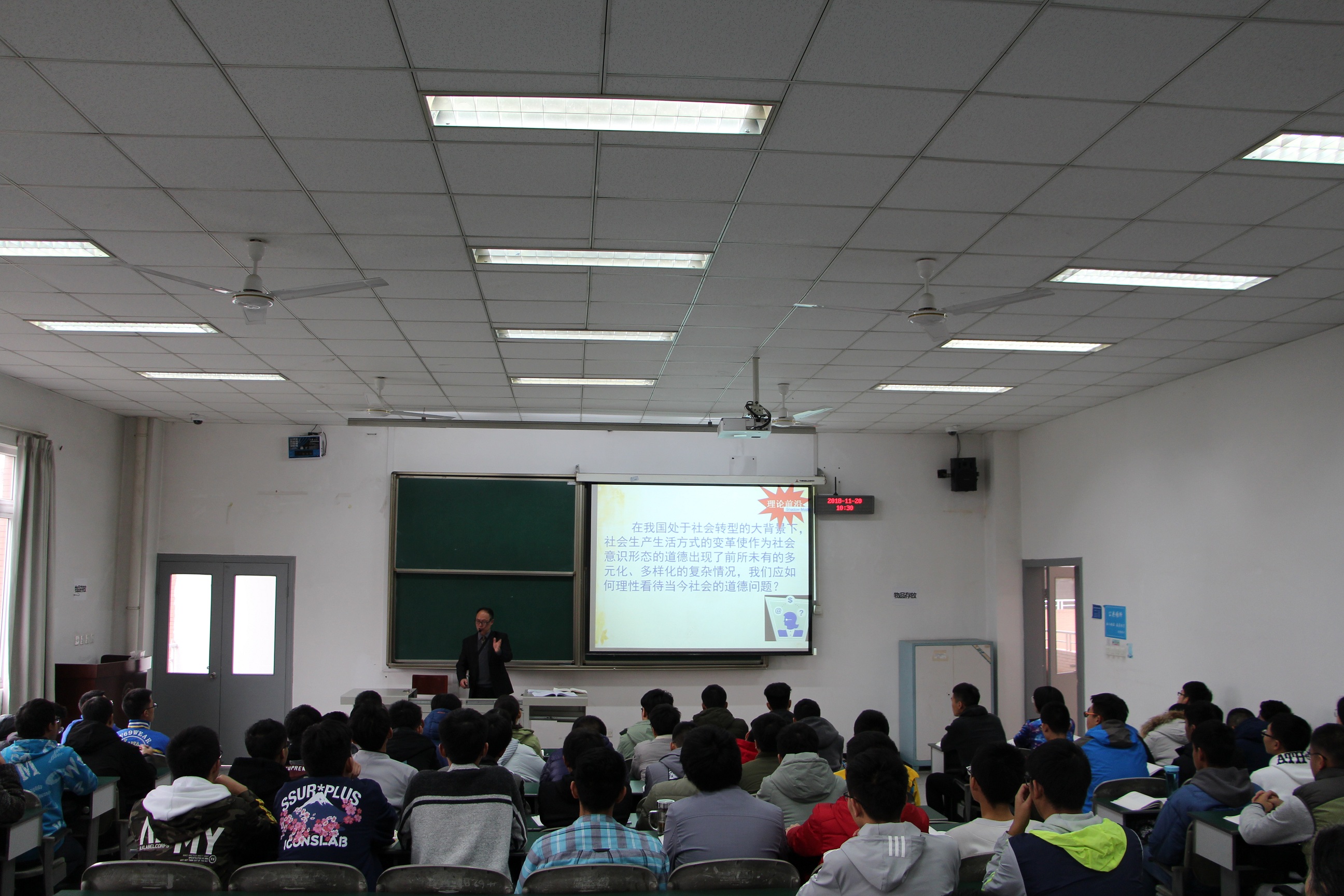 何泓授课的主题是“学习道德理论,注重道德实践”。他以坚实的理论功底并结合声情并茂的、富有激情的课堂讲授,得到学生的热烈回应,教学效果良好。