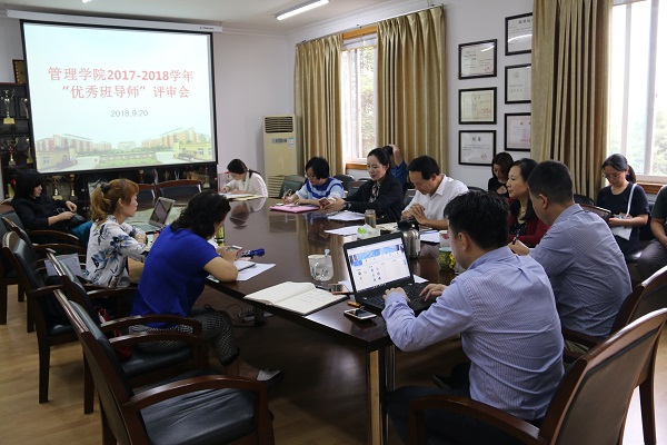 【本网讯】为了深入贯彻落实《中共15vip太阳集团官网委员会关于加强和改进新形势下高校思想政治工作的实施意见》和《15vip太阳集团官网本科生班导师制实施办法》等文件精神,进一步强化班导师队伍建设,整体提升班导师队伍工作能力和水平,促进和完善班导师工作制度,调动班导师工作的主动性、积极性和创造性,9月20日上午,管理学院召开了班导师工作会议,评选2017-2018学年本科生“优秀班导师”,审议确定2018级新生班导师。学院党总支书记王子华、院长黄萍及班导师工作领导小组全体成员、全体辅导员参加了会议。