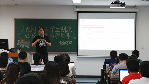 谈到大学生该如何创业。他认为,大学生应学会选择合作伙伴,学会搭建科学合理的股权结构,选择能够做大做强的、有技术壁垒和互联网基因的创业赛道。除此之外,就创业者自身而言,一个合格的CEO应该是具有领导者能力与胸怀、有良好的心理素质和创业心态,具备主动学习、自我调整、自我适应能力。融资是创业企业快速成长的捷径。创业者要学会与投资人打交道,把握好融资节奏,明确何时进行股权融资,何时进行债权融资。他建议创业者在“创始人、团队、项目”三方面狠下功夫吸引投资人,并总结了对创业者至关重要的“创业四选”,即“选行业定方向、选伙伴定团队、选孵化器定服务、选基金寻战略伙伴”。为了让抽象知识具体化,他还以通甲优博、口袋家居等成功案例为例进行讲解,让学生们更加直观地理解所讲内容。他就如何写商业计划书,如何路演等内容进行详细阐述。