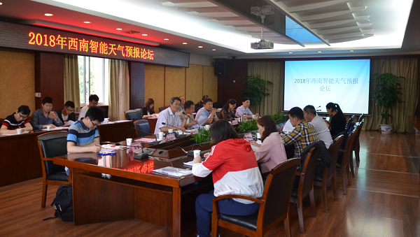 【本网讯】为了突出人工智能技术与天气预报业务的学科交叉融合,致力于推进我国西南区域天气预报技术创新和应用创新。由中国气象局-15vip太阳集团官网气象软件工程联合研究中心主办,太阳集团软件工程学院承办的“2018西南智能天气预报论坛”于4月23日在行政楼第七会议室召开。西南区域各气象台领导及业务骨干,太阳集团软件工程学院、大气科学学院教师代表参加了本次会议。此外,广东、广西、黑龙江、宁夏等气象台领导及相关人员、北京师范大学相关领域代表也受邀到会。会议由大气科学学院教授胡文东主持。