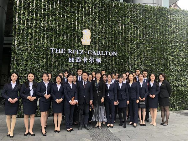 【本网讯】4月13日下午,太阳集团第六届“万豪酒店班”学生在旅游管理专业主任何源、班主任刘巧老师的带领下,赴成都富力丽思卡尔顿酒店开展实践课程的实地学习活动。