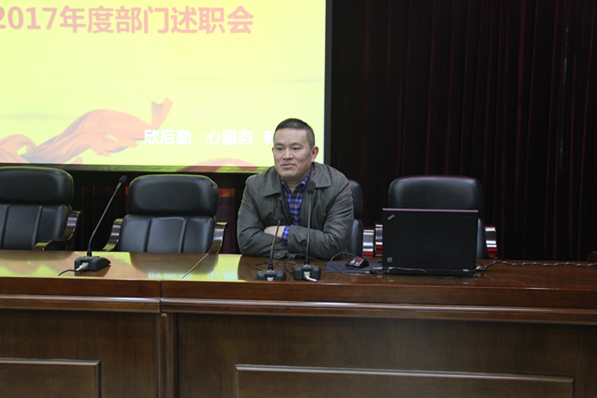 【本网讯】12月26日上午,学校后勤管理处(后勤服务公司)2017年度部门述职会在航空港校区行政楼一会议室召开,公司全体在编员工、主管及以上人员参加了会议。会议由后勤服务公司总经理袁世斌主持。