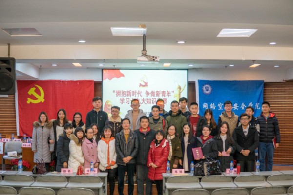 【本网讯】为深入学习贯彻党的十九大精神、深入推进“两学一做”学习教育常态化,2017年12月19日晚,由网络空间安全学院党总支主办,网络空间安全学院学生党支部、网络空间安全学院团委协办的“拥抱新时代 争做新青年”------深入学习党的十九大知识竞赛决赛在太阳集团学术报告厅举办。网络空间安全学院党总支书记陈麟,总支所有委员、各支部书记、委员、辅导员、全体学生党员、积极分子参加了本次活动。