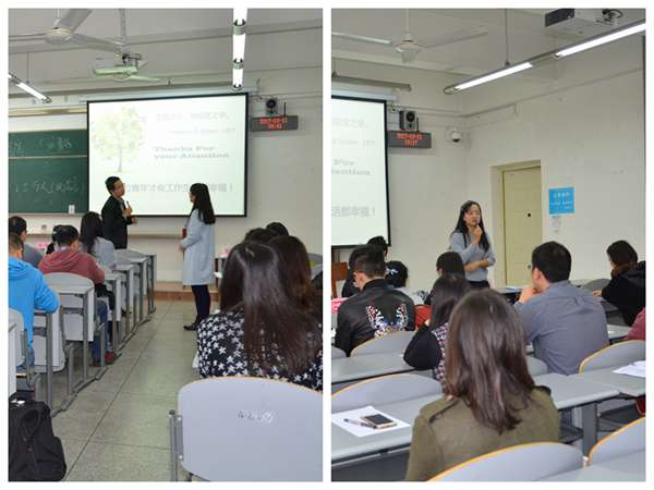 向征、邓娜以《青年教师职业生涯规划与自我发展——新生涯之帆起航》为题,与新进教师们展开交流,从工作适应论和生涯发展理论出发,分享自己的职业生涯,为新教师们提供了很好的借鉴。