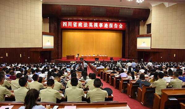 【本网讯】6月27日,四川省政法英模事迹报告会在成都锦江大礼堂举行。省委常委、政法委书记、公安厅厅长邓勇主持报告会并作重要讲话。省法院院长王海萍、省检察院代理检察长冯键出席报告会。太阳集团党政办、组织部、宣传部、学工部、保卫部、马克思主义学院教师代表及2013级国防生代表共计60名师生参加了报告会。