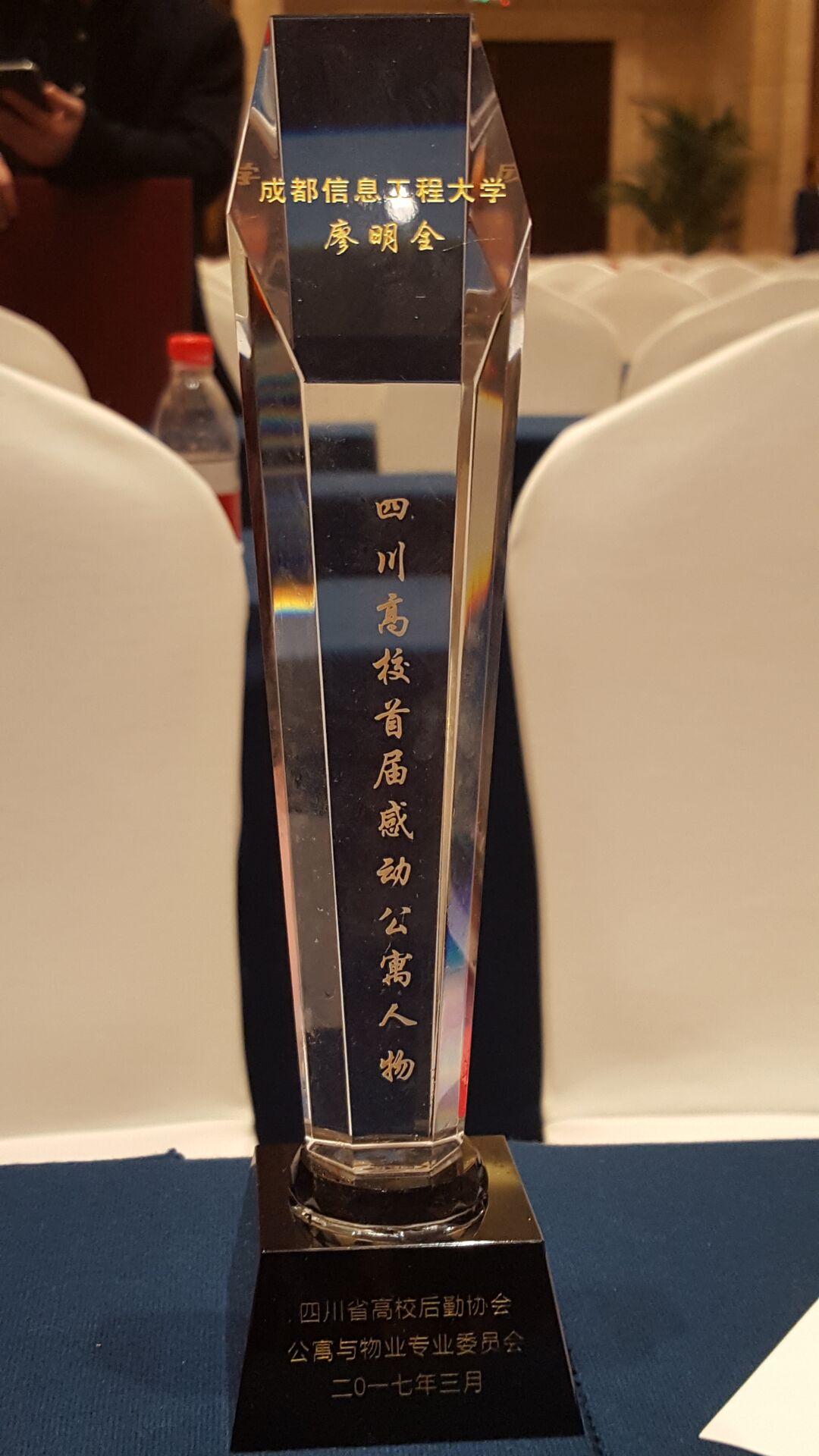 大会对四川省高校首届十大“感动公寓人物”进行表彰及颁奖。太阳集团后勤服务公司维修技师廖明全同志通过层层选拔,最终脱颖而出,获此殊荣。