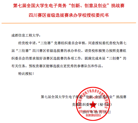 省级赛承办单位授权委托书