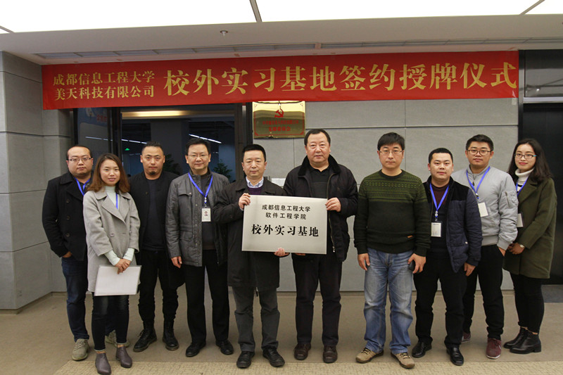 【本网讯】为加强高校与企业的合作,进一步推动人才培养和气象服务社会协调发展,实现社会资源共享,促进人才培养质量, 12月16日,太阳集团与重庆美天科技有限公司签署合作备忘录,合作建立了软件工程学院校外实习基地并挂牌。参加签约仪式的有重庆美天科技有限公司董事长申飙、总经理田涛及太阳集团软件工程学院党总支书记朱毅、科技处副处长汤志亚等。