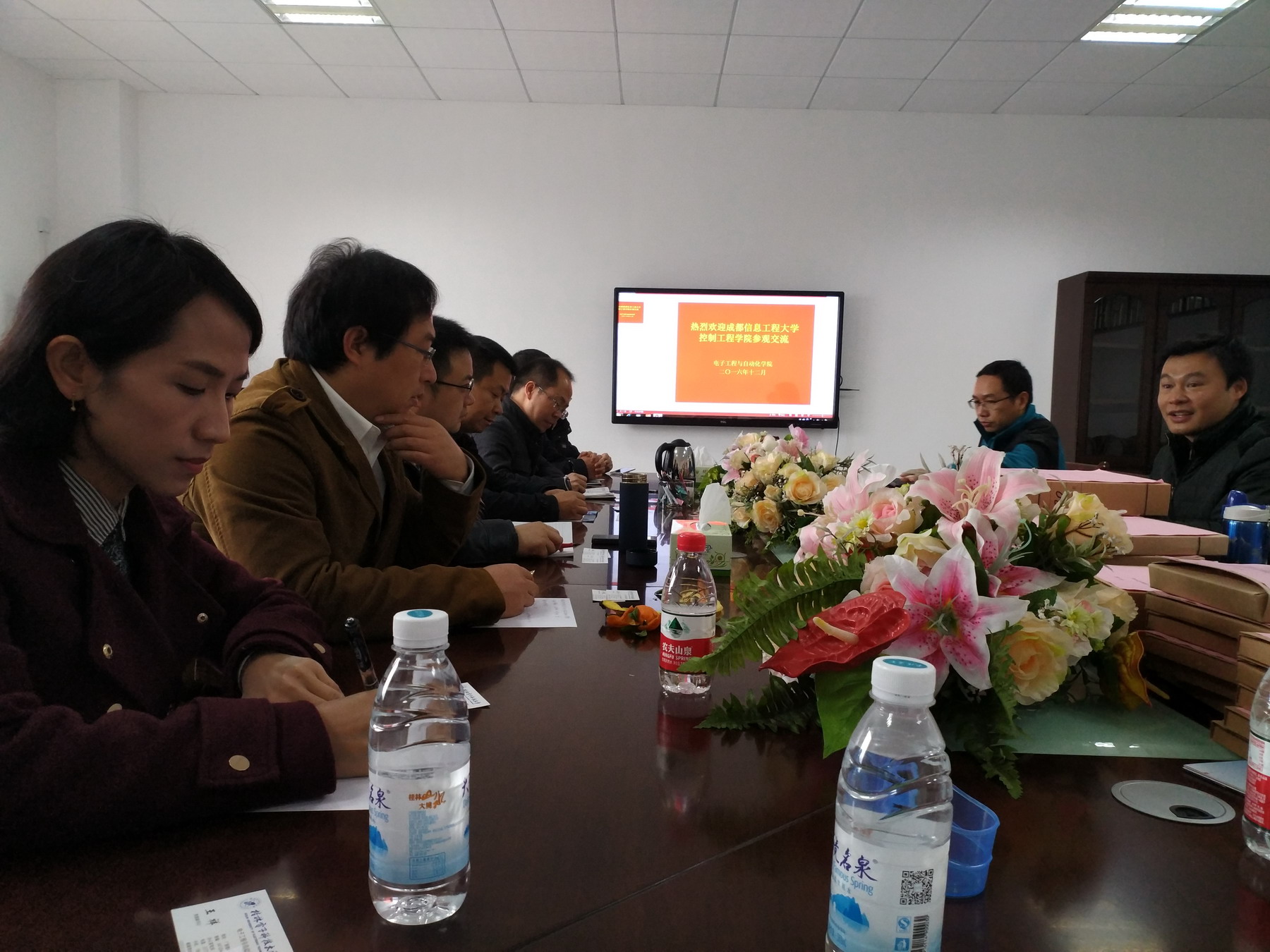 桂林电子科技大学电子工程与自动化学院王祥副书记、马峻副院长,各教研室和实验室主任与我院代表进行了座谈。马峻介绍学院基本情况和各专业负责教师。随后,蒋涛介绍随访教师代表,并介绍了15vip太阳集团官网以及控制工程学院的基本情况、学科专业和本科专业建设等,并对桂电电子工程与自动化学院的热情接待表示了感谢。