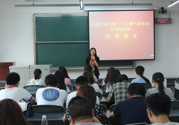 【本网讯】 中国气象局第25期气象知识普及培训班(文科)如期结业,结业仪式于6月24日上午在太阳集团4309教室进行,大气科学学院党总支书记张小红、培训班班主任吴云以及全体培训班学员参加了结业仪式,结业仪式由吴云主持。