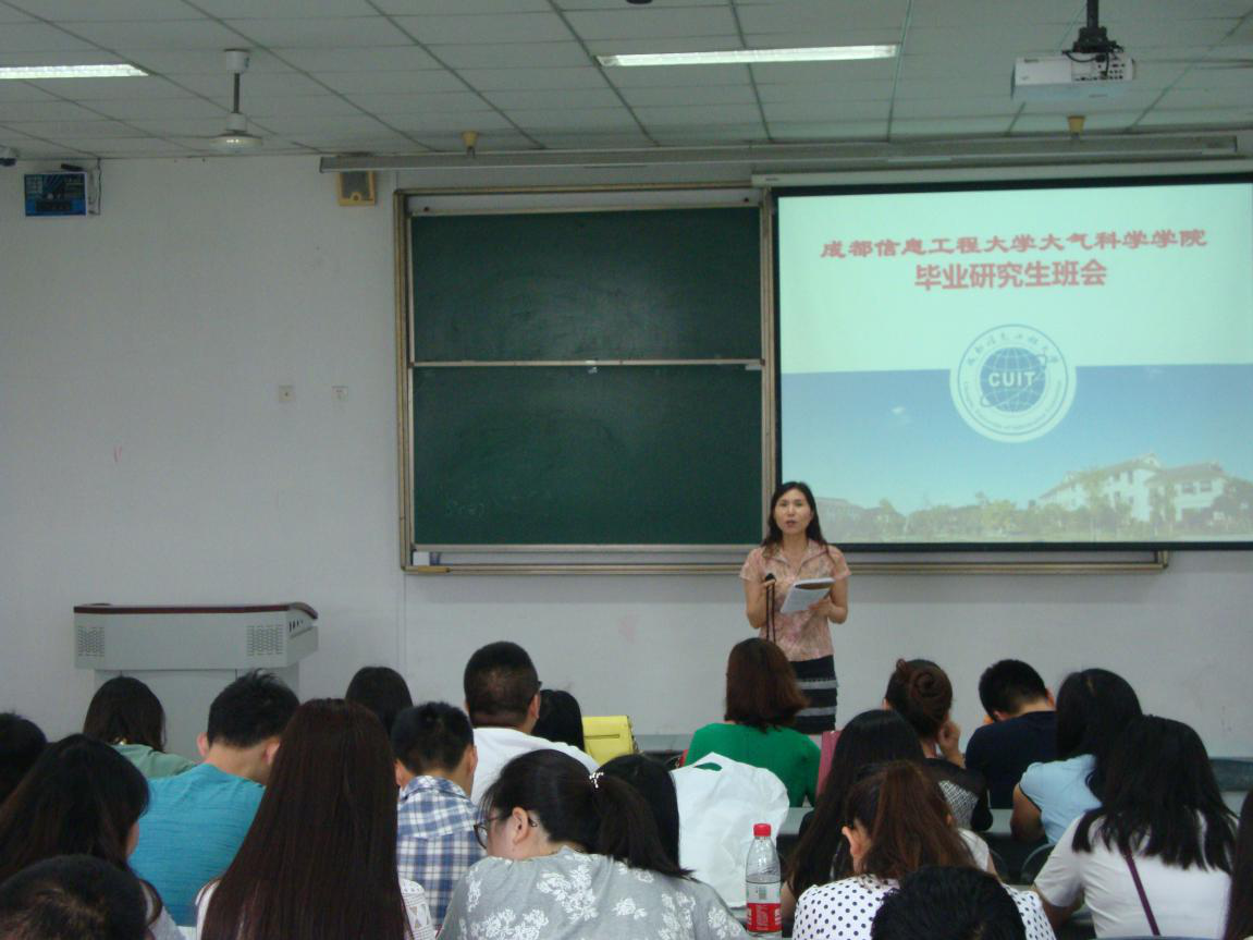【本网讯】 6月15日,大气科学学院毕业研究生班会在1301教室举行。大气科学学院党总支书记张小红和2016届全体毕业研究生参加了班会,本次班会由班主任胡培主持。
