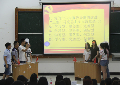 【本网讯】为扎实推进“两学一做”学习教育有关要求,进一步促进党员同志深入学习党章党规、学习习近平总书记系列重要讲话精神讲话,促进每位党员自觉按照党员标准规范言行,进一步坚定理想信念,提高党性觉悟,管理学院党总支于2016年6月15日晚上,在L4102教室举办“两学一做”党员知识竞赛。
