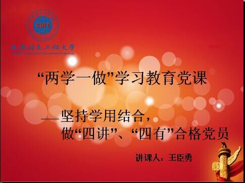 【本网讯】为认真学习贯彻党中央“学党章党规、学系列讲话,做合格党员”教育精神,根据学校“两学一做”办公室的安排,6月15日,学校退休教师王臣勇在龙泉校区为离退休党员作“两学一做”专题党课。