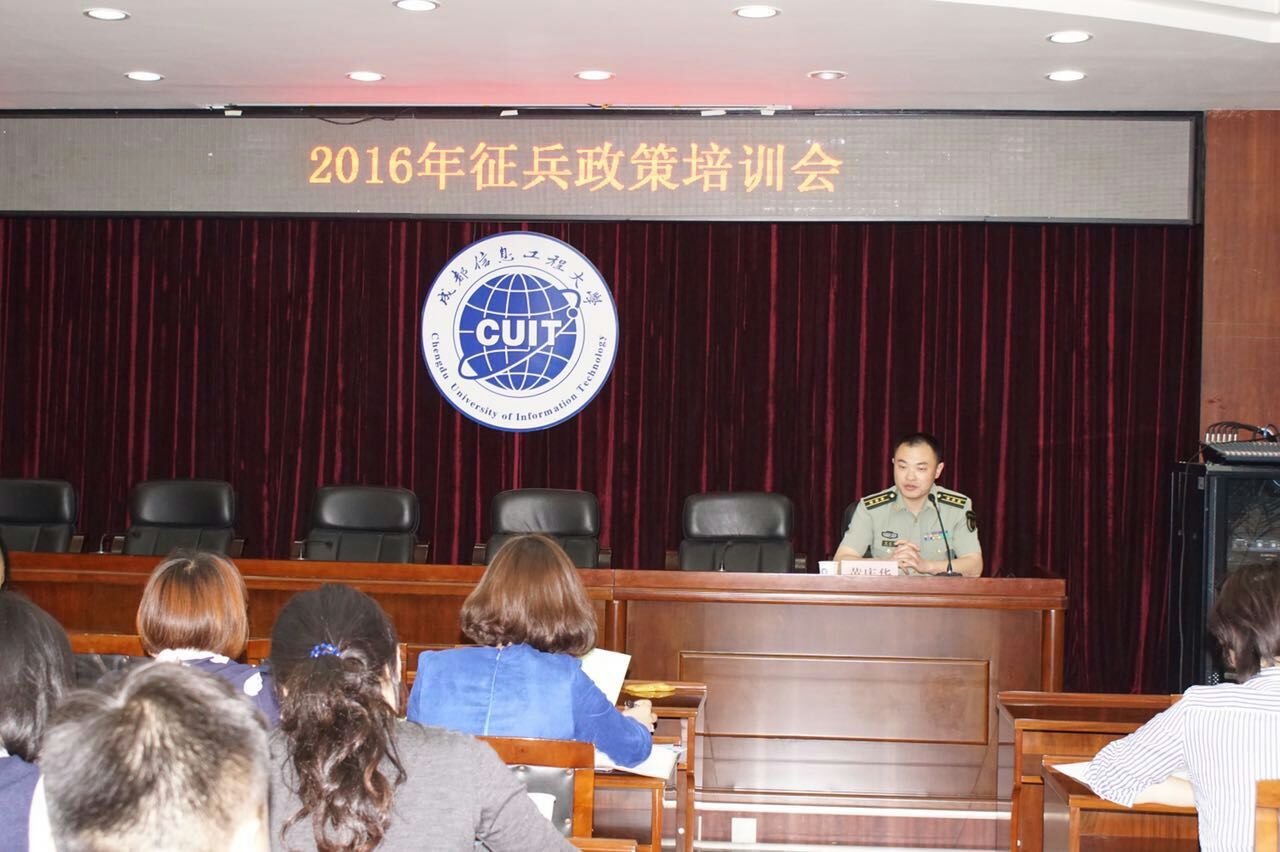 黄庆华政委传达了2016年全国和全省征兵工作会议精神,解读了2016年征兵工作政策,强调当前形势下征兵工作在高校的重要性,要充分发挥辅导员作为征兵工作一线的骨干作用,切实加大征兵宣传力度,做好大学生应征入伍的思想动员工作,并对征兵工作中遇到的各类问题进行了现场解答。