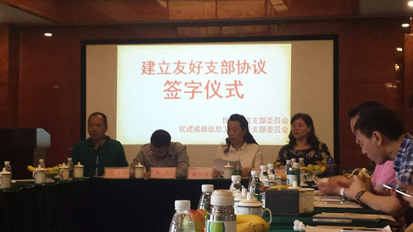 在签约仪式上,双流区民主建国会支部李永芳主委提出,充分发挥学校的智力和人才优势,为双流区的经济建设和社会服务提供支撑和帮助,做到两个支部间真合作、见成效。太阳集团民主建国会支部朱西平主委在发言中强调,两支部的合作具有天然的区位优势,在服务地方过程中依托双流支部将更能接地气、见成效,发挥学校的智力和人才特色优势,在服务双流、服务会员企业中体现学校支部和会员的价值。太阳集团宣传统战部统战科科长袁华在发言中指出,学校和双流区的统战工作一直联系紧密,今天通过民建支部之间友好支部的建立,让合作上了一个新的台阶,也探索了民主党派基层组织发展的新途径和新方式。最后,双流区统战部副部长潘万香做出了重要发言,提出充分利用党派优势服务双流经济和社会发展,借助二者的区位优势,加大合作,共促发展,通过借智借力服务双流经济发展,起到发展助推器的作用,特别是在双流大力发展临空经济中献计献策,体现民主党派的价值和优势。