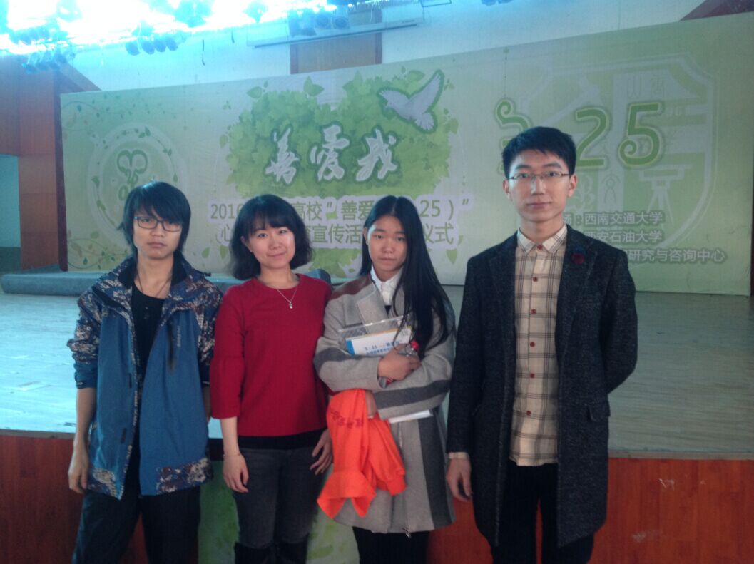 【本网讯】3月25日上午,由西南交通大学主办的“善爱我”(3.25)心理健康教育宣传活动启动仪式在西南交通大学犀浦校区隆重举行,启动仪式上有来自四川及陕西近二十所高校的师生代表,太阳集团心理健康教育中心李嘉雯老师和三名同学参加了本次活动。本次活动的主题是:“善爱我,点亮明天的希望”,旨在以“阳光、坚韧、创造、感恩”为基本目标,促进大学生积极培育“善爱我”的心理文化,使大学生心理健康教育工作水平得到大力提升。