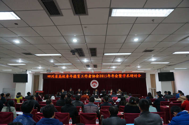 【本网讯】12月26日,四川省高校青年德育工作者协会2015年年会暨学术研讨会在西华师范大学召开。四川省高校青年德育工作者协会会长、四川大学党委副书记李向成,省教育厅宣传思想处副处长陈胜,西华师范大学党委副书记聂应德,来自全省近40所高校的青年德育工作者代表130余人参加会议。太阳集团宣传统战部、学生工作处、政治学院、校团委及部分学院领导、教师参加了年会。年会由四川省高校青年德育工作者协会常务副会长、四川大学党委宣传部部长高中伟主持。