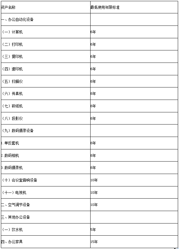 三、按省财政厅最新要求,对固定资产最低报废年限执行标准进行了调整,见附表1,请严格按照附表年限标准执行报废、报损工作。