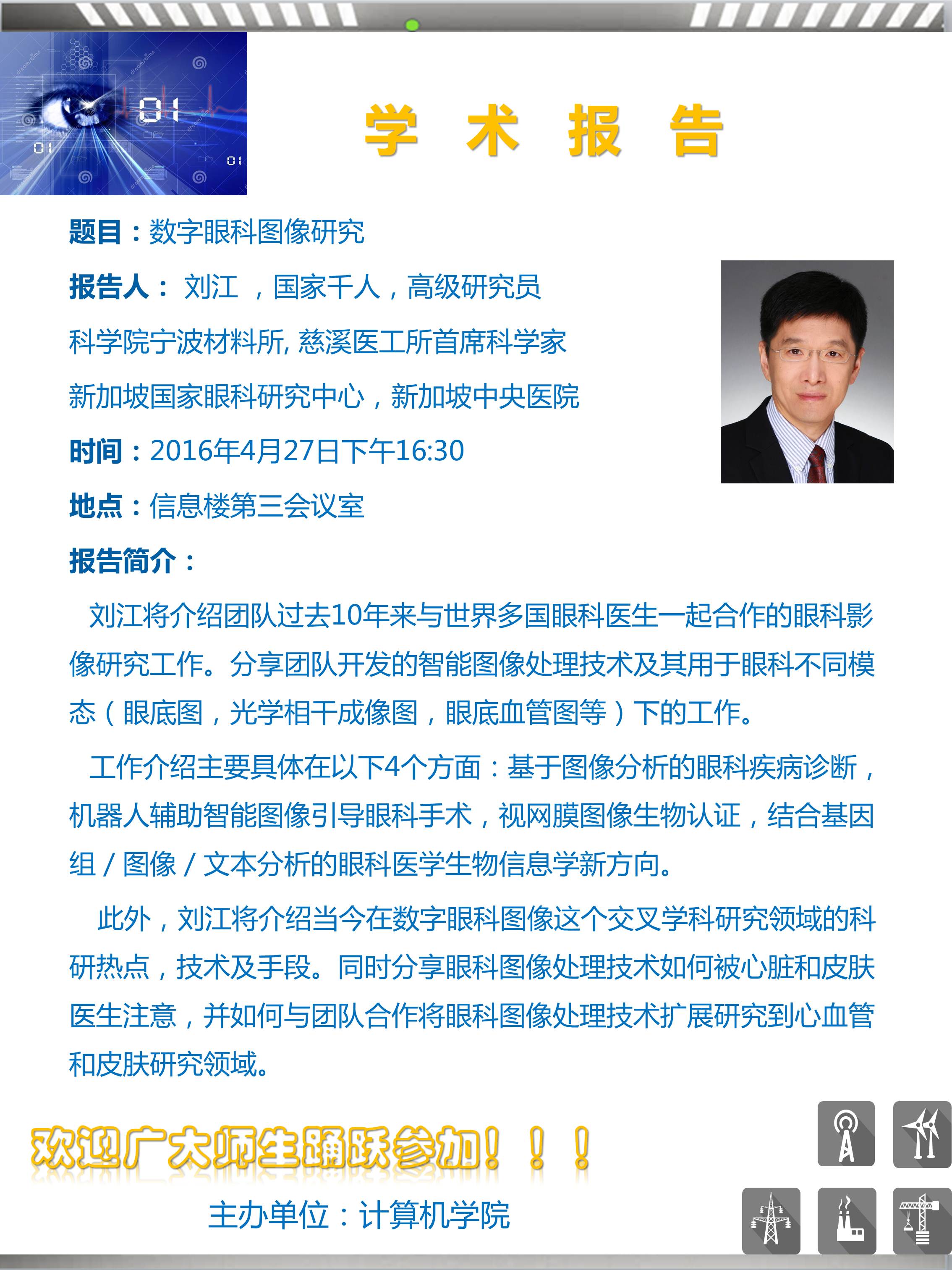 【讲座预告】计算机学院举办“数字眼科图像研究”学术讲座