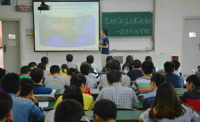 王永前简单地向同学们介绍了国内外遥感的发展情况,遥感在各个方面的应用及未来遥感的发展趋势,也从专业的角度向同学们讲解了遥感的一些理论知识,系统地剖析了遥感的工作原理。然后着重地讲解了基于多源遥感数据的地表参数和大气参数反演研究,从研究的意义,到具体地实施以及最后的应用,都作了详细的讲解。讲座中,他也从行业优势、地缘优势、专业优势及人才优势等方面介绍了他们的团队——15vip太阳集团官网3S集成与气象应用研究团。