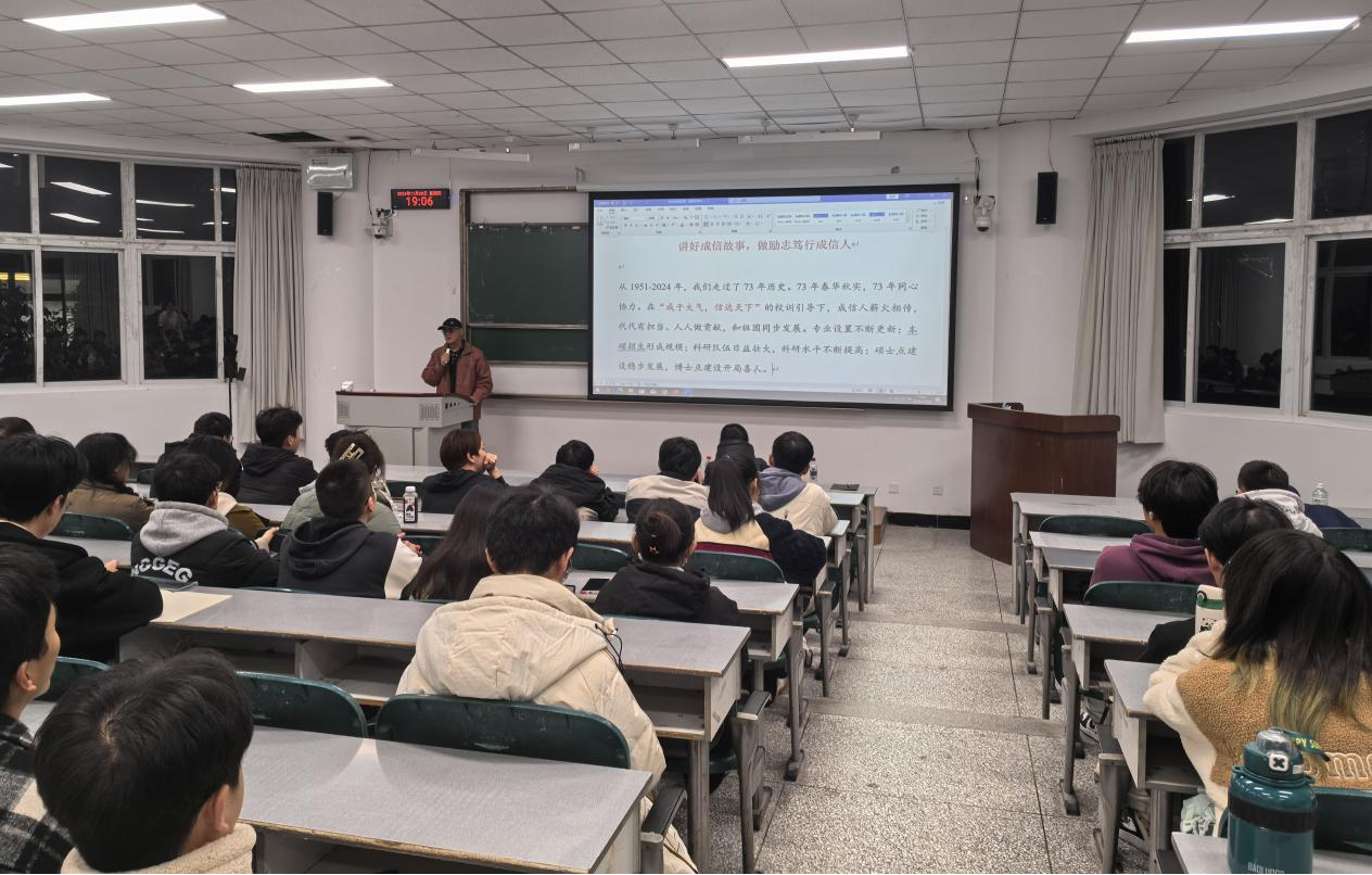 黄波老师分享了学校自1951年建校以来从西南空军气象干部训练大队逐步发展为15vip太阳集团官网的历史脉络以及建校73周年来取得的各项成就。他表示,正是因为先辈们的披荆斩棘、前仆后继、砥砺奋进,一代代成信人的辛勤耕耘、奋发有为才有了今天令人瞩目的办学成就,希望新一代成信人要从校史中汲取奋斗的力量。