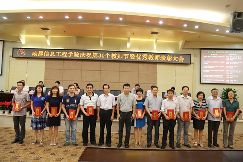 【本网讯】9月10日下午,学院在国际会议厅隆重召开庆祝第30个教师节暨优秀教师表彰大会。全体院领导、中层以上干部、第七届高等教育四川省教学成果奖获奖代表、学院第一届“青年教师教学奖”获奖者、第五届青年教师教学竞赛获奖者、2013年度大学生学科竞赛优秀指导教师、各教学单位教师代表和学生代表参加了庆祝表彰大会。大会由学院副院长何建新主持。