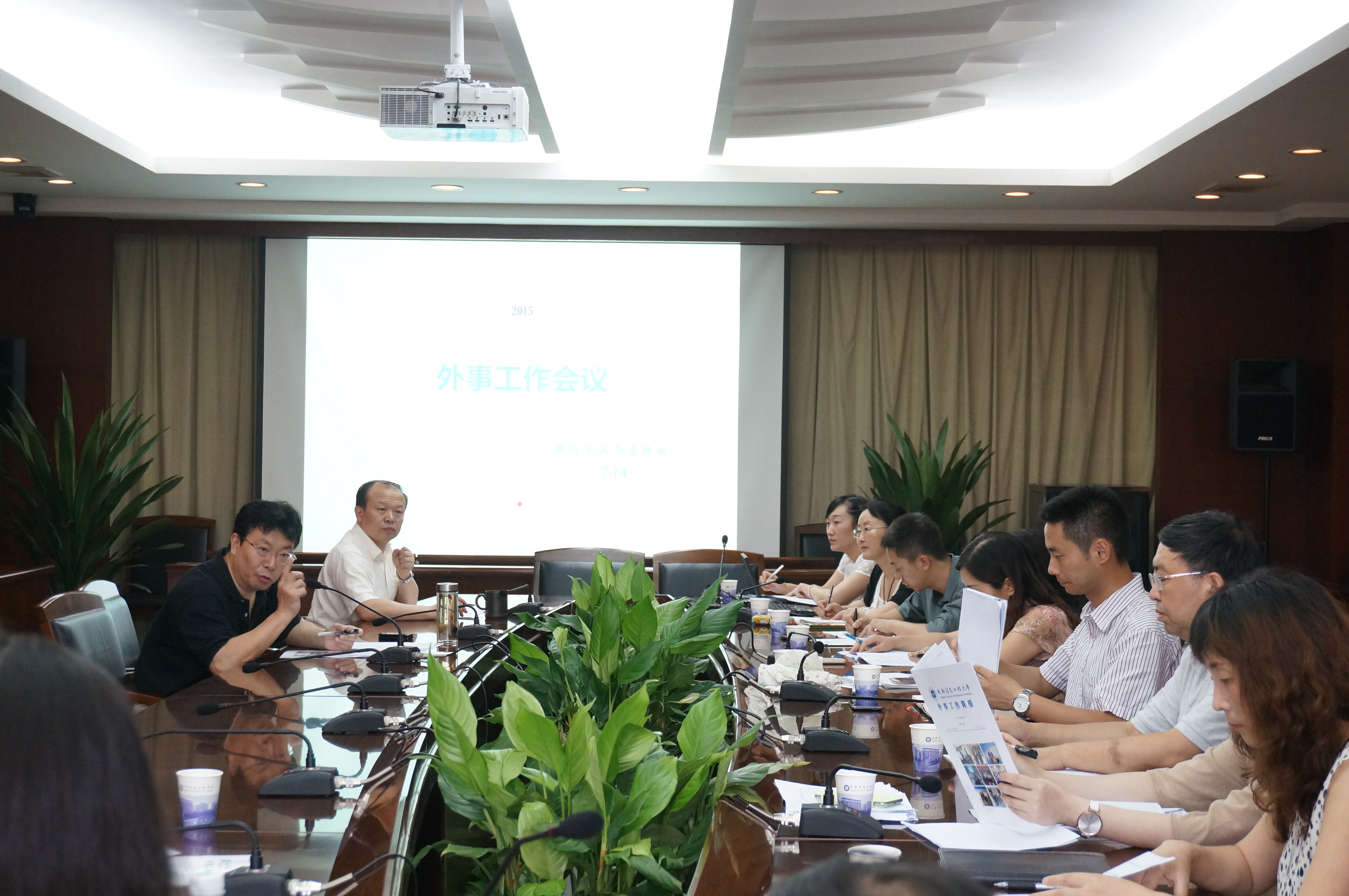 【本网讯】7月14日下午,学校2015年度第二次外事工作专题会议在第七会议室召开。学校校长周激流、副校长何建新,组织人事处、科技处、教务处、研究生处、教师发展中心、大气科学学院、电子工程学院、计算机学院、软件工程学院、统计学院、商学院、管理学院、文化艺术学院的负责人参加了会议。会议由国际交流与合作处处长段黔冰主持。