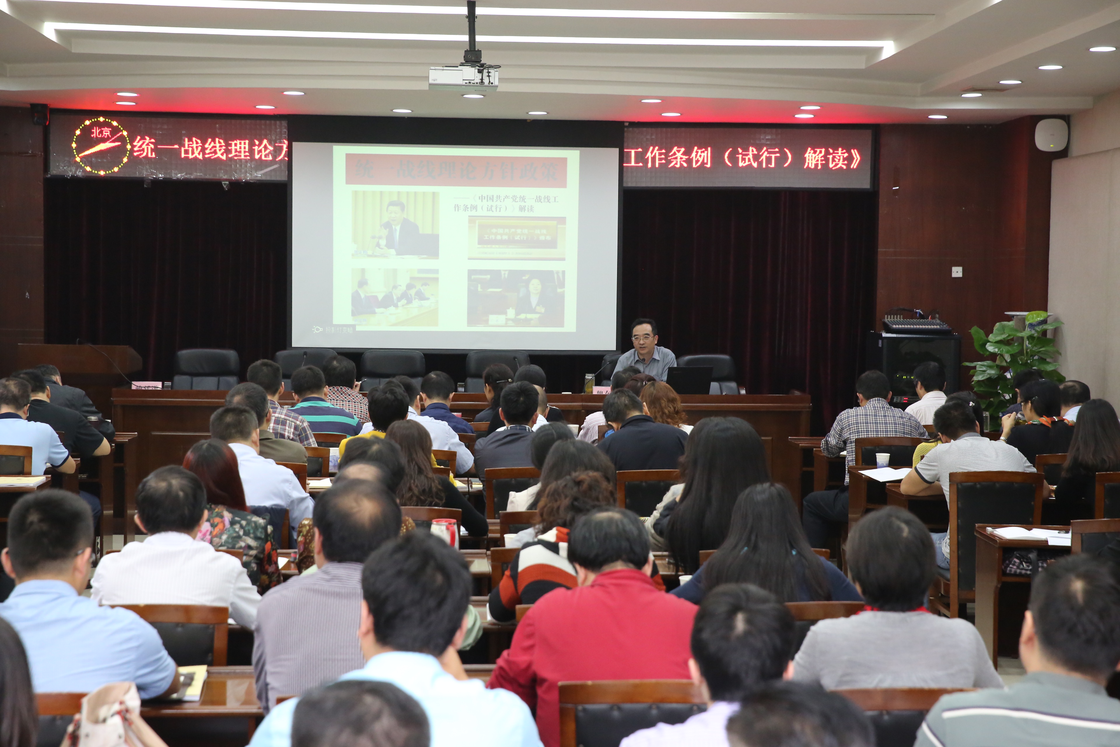 魏在田在宣讲中详细解读了新形势下党的统一战线理论方针政策,围绕《中国共产党统一战线工作条例(试行)》的颁布历史沿革、背景框架和主要内容,向与会者作了深刻而生动的讲解和分析,并就学习贯彻省委统战工作会议和《四川省<中国共产党统一战线工作条例(试行)>实施细则》精神提出了相关意见。