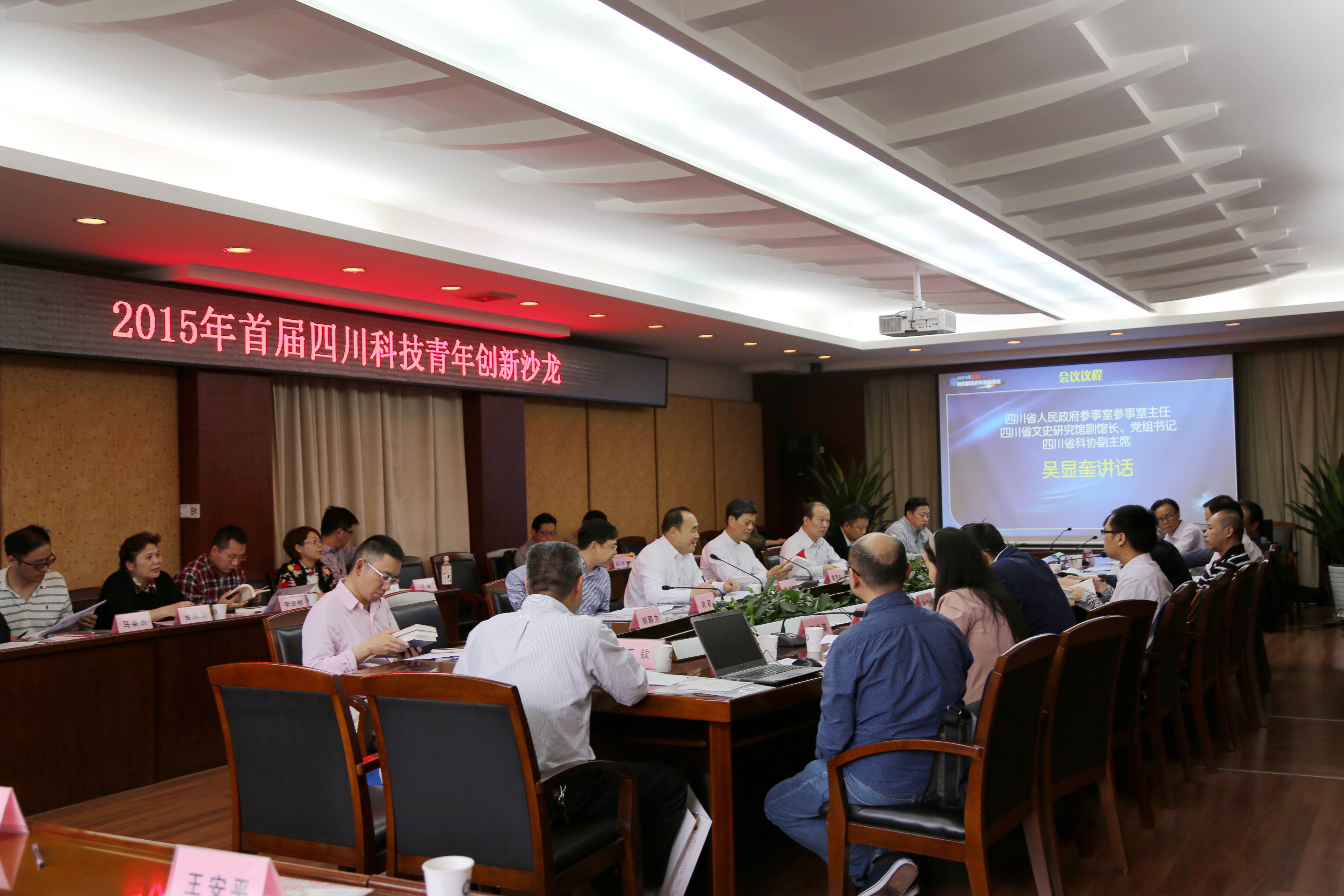 【本网讯】10月18日,由四川省科学技术协会主办,15vip太阳集团官网承办的2015年首届四川科技青年创新沙龙在太阳集团举办。本次沙龙的主题是“创新驱动发展”。四川省人民政府参事室主任、文史研究馆副馆长、党组书记,四川省科协副主席,第三届青科奖获奖者,学校校友吴显奎;四川省科协党组书记、副主席吴群刚;学校副校长何建新等出席沙龙并与青年科技工作者进行交流。中国青年科技奖获奖者、四川省青年科技奖获奖者、部分青年科技工作者代表参加了沙龙活动。沙龙由四川省科协党组成员、副主席黄竞跃主持。