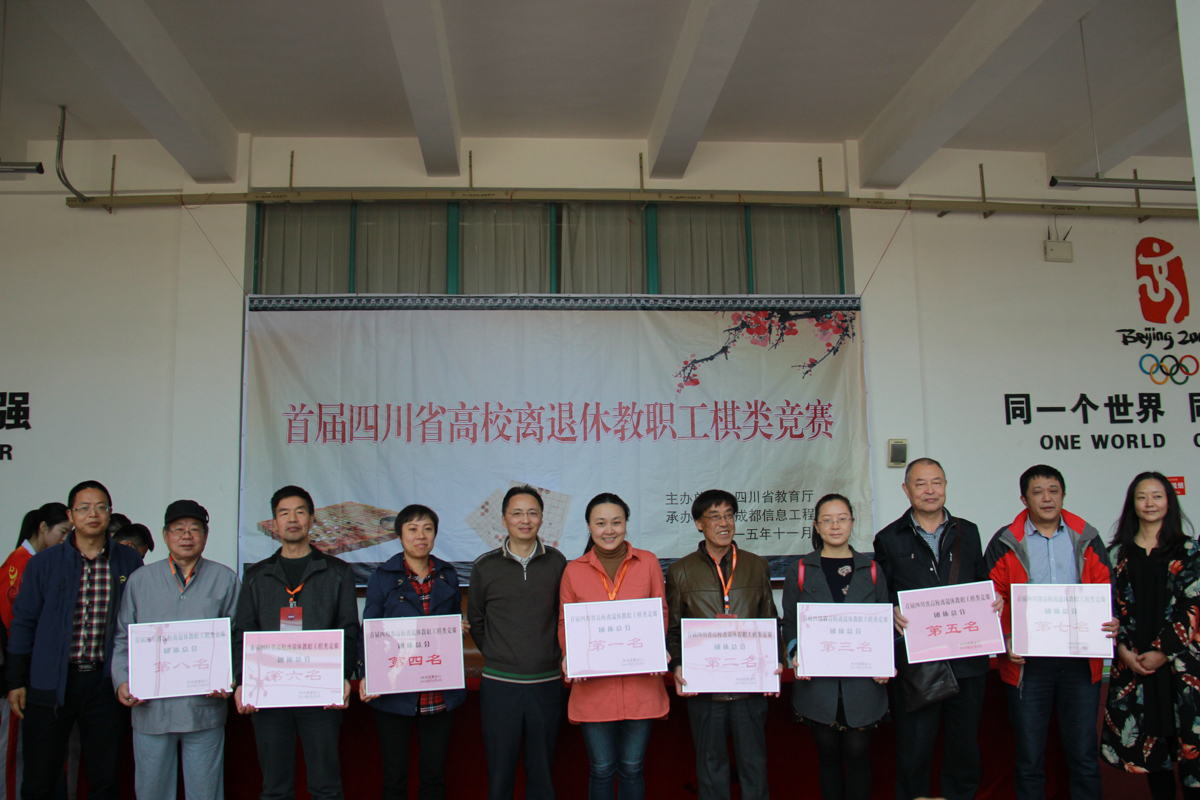【本网讯】省教育厅主办,太阳集团承办的首届四川省高校离退休教职工棋类竞赛于11月7日在太阳集团举行。省政府参事室参事、省老体协副主席王晓都,学校党委副书记倪鸣,省教育厅关工委秘书长李功成,省教育厅离退处领导蒲吉、杨岳林、白峰,学校体育部、离退处负责人参加了在体育馆举行的开幕式。