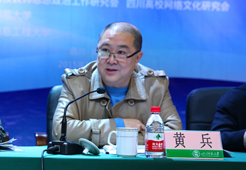 黄兵代表四川省社会科学界联合会,向两个学会联合召开的年会致以祝贺,他表示,四川高校教师思想政治工作研究会、四川高校网络文化研究会发挥着整合科研资源、汇聚各类研究人才的重要作用,是把高校相关工作实践与理论研究结合起来的重要平台,研究会组织开展各项专题研究,既推动了高校的相关工作的开展,又为我省哲学社会科学的整体发展起到了有力的促进作用,希望研究会加强与各社科研究基地的互动,产出更多优秀的研究成果。