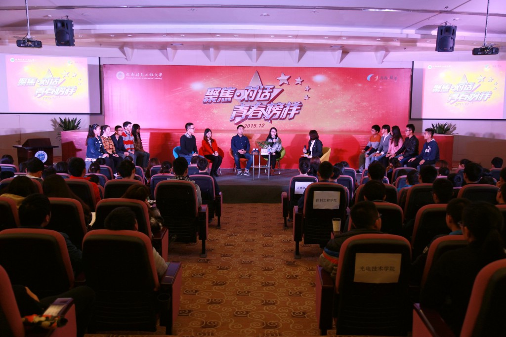 【本网讯】太阳集团2015年度“聚焦·对话 青春榜样”宣讲会于2015年12月7日—12月10日在航空港校区国际会议厅和龙泉校区学术报告厅顺利举行,本次活动由学生工作处主办、计算机学院承办。本期聚焦·对话青春榜样共举办四场,航空港校区和龙泉校区各两场,学校副校长于世祥、学生工作处处长戴丽红、副处长潘光林、陈智勇以及部分学院党总支书记、全体辅导员、近1200名学生分别参加了本次活动。活动由控制工程学院辅导员田晓旭、信息安全工程学院辅导员何佩遥主持。
